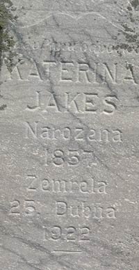 | Katerina (Catherine) | F | 1857 | 25 Apr 1922 | 65 | Jakes |