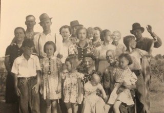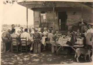 Your Dad is in the bottom left of the photo of everyone gathered around, with I think Dallas on the lap of his grandmother. My Mom is sitting on her grandfather’s lap. Tommy is looking back at one of the Uncles, who grandma said “He’s not trying to hit Tommy, he’s just raising his arm to make sure everyone is in the picture frame…”