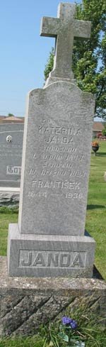 Frank Janda was married in his native land, Bohemia, and in 1870 he and his wife came to the United States, landing at the port of New York. After spending a short time in the American metropolis they came west, locating in Delaware County, Iowa where they remained about a year, at the end of which time they came to Minnesota and joined the considerable Bohemian colony which had settled in the New Prague neighborhood. Mr. Janda bought a 40-acre tract in Lanesburg township, to which he presently added an adjoining tract of 15 acres, and on that 55 acre farm lived for 30 years, establishing a substantial home and becoming one of the leaders in the community life thereabout. When they retired from the active labors of the farm they moved to Montgomery. To Frank Janda and wife eight children were born, five living: Barbara, Frank, Joseph, Anna & John.